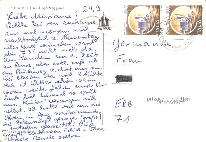 old postcard Isola Bella Lago Maggiore Fliegeraufnahme postalisch gelaufen Erhaltung siehe scans
