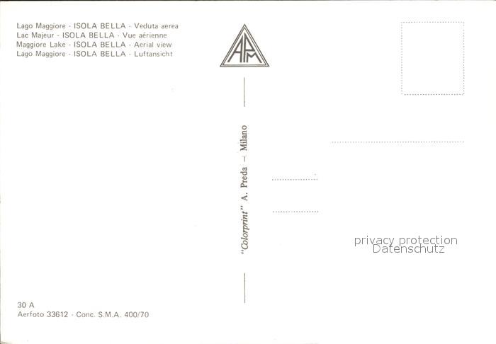 Isola Bella Lago Maggiore Fliegeraufnahme postalisch nicht gelaufen Erhaltung siehe scans