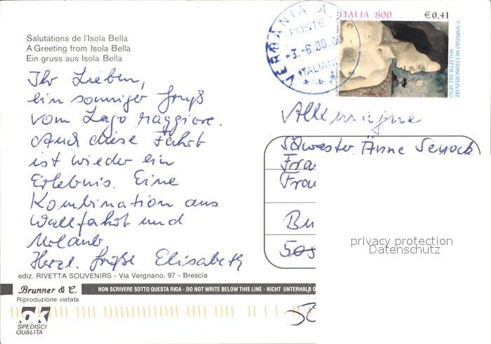 old postcard Isola Bella Lago Maggiore Fliegeraufnahmen postalisch gelaufen Erhaltung siehe scans