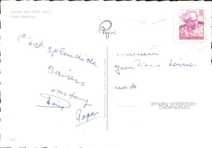 old postcard Isola Bella Lago Maggiore Garten postalisch gelaufen Erhaltung siehe scans
