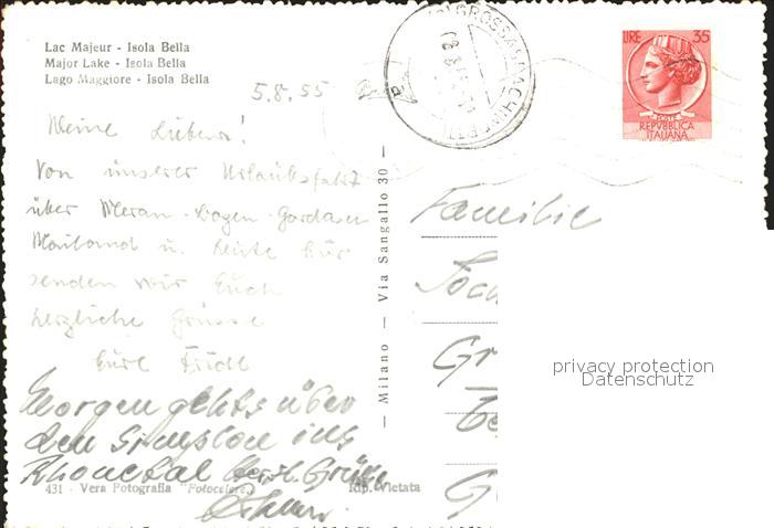 old postcard Isola Bella Lago Maggiore Insel Palmen postalisch gelaufen Erhaltung siehe scans
