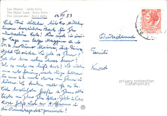 old postcard Isola Bella Lago Maggiore Panorama Giardini Garten Skulptur Fasan postalisch gelaufen Erhaltung siehe scans