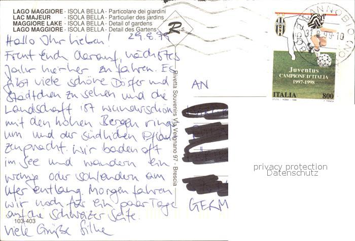 old postcard Isola Bella Lago Maggiore Particolare dei giardini postalisch gelaufen Erhaltung siehe scans