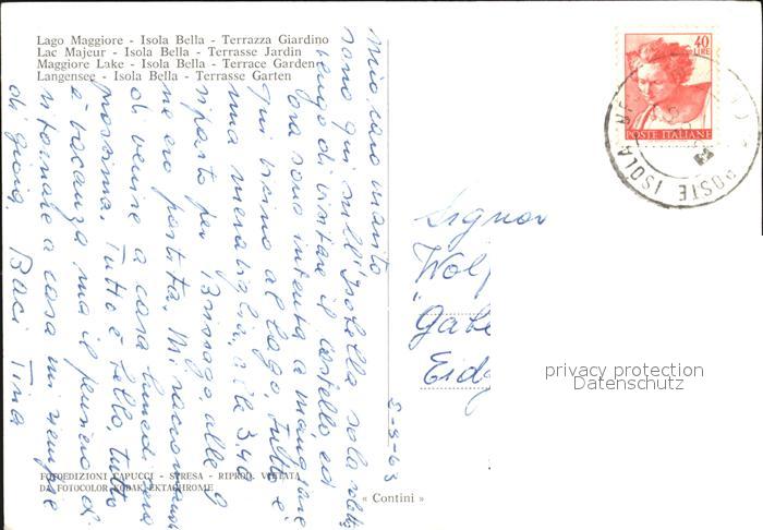 old postcard Isola Bella Lago Maggiore Terrasse Garten postalisch gelaufen Erhaltung siehe scans