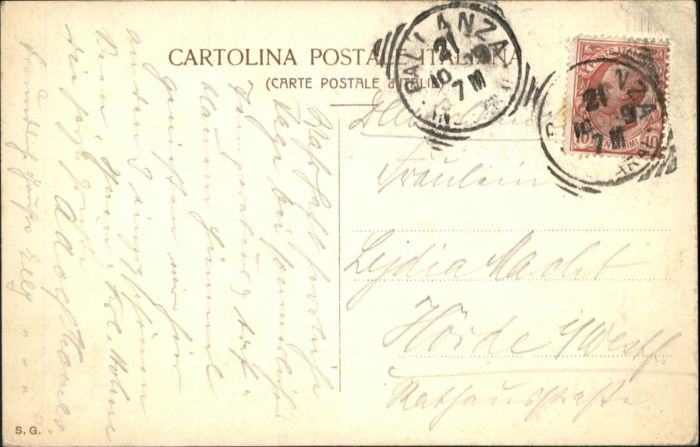 old postcard Isola Bella Lago Maggiore Terrazze Lago Como postalisch gelaufen