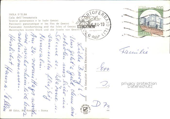 old postcard Isola d Elba Cala dell´Innamorata Isole Gemini postalisch gelaufen Erhaltung siehe scans