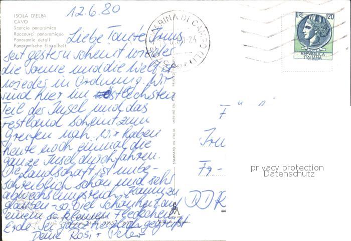 old postcard Isola d Elba Cavo Teilansicht postalisch gelaufen Erhaltung siehe scans