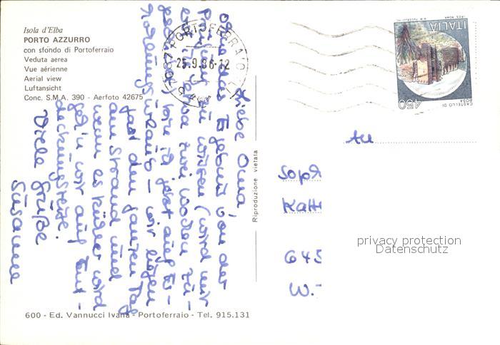 old postcard Isola d Elba Fliegeraufnahme postalisch gelaufen Erhaltung siehe scans