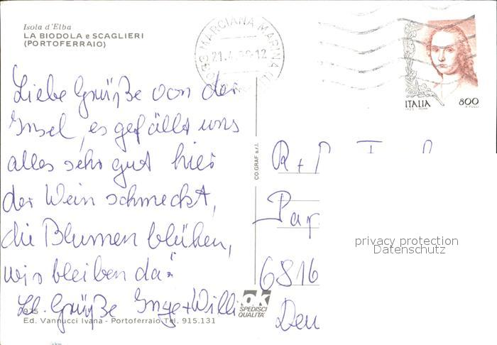 old postcard Isola d Elba La Biodola Scaglieri postalisch gelaufen Erhaltung siehe scans