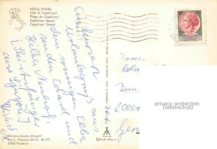 74084781 old postcard Isola d Elba Lido di Capoliveri Fliegeraufnahme postalisch gelaufen Erhaltung siehe scans [WerneD78] KatCode: 11240