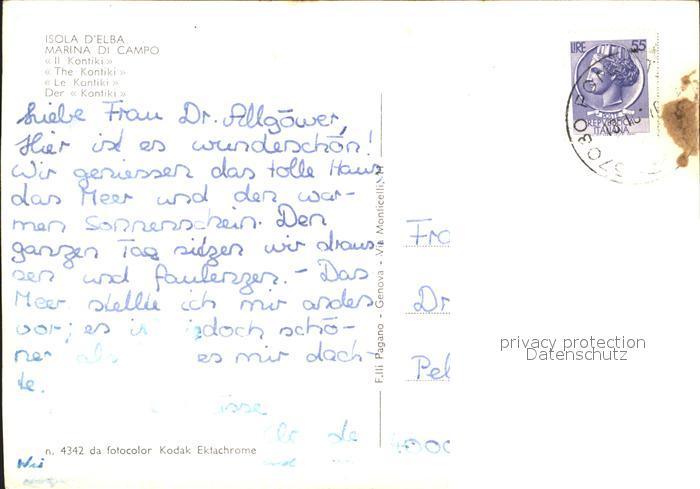 old postcard Isola d Elba Marina di Campo Il Kontiki Segelboote postalisch gelaufen Erhaltung siehe scans