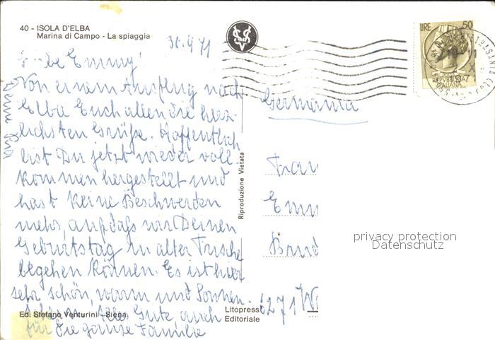 old postcard Isola d Elba marina di campo la spiaggia postalisch gelaufen Erhaltung siehe scans