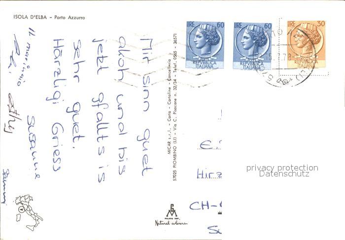old postcard Isola d Elba Porto Azzuro Hafen postalisch gelaufen Erhaltung siehe scans