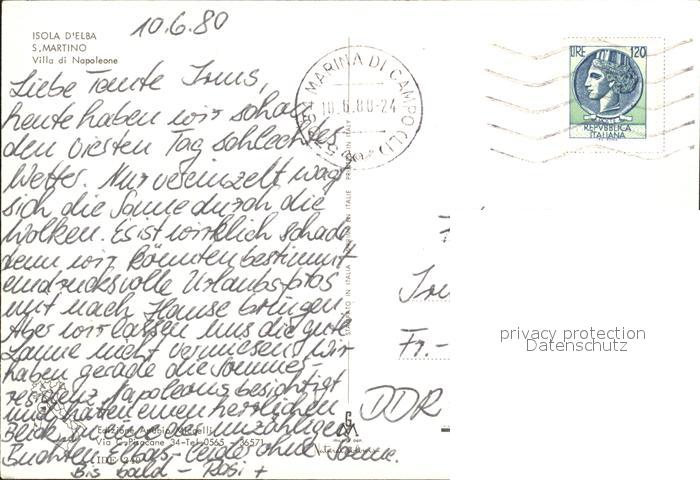 old postcard Isola d Elba S. Martino Villa di Napoleone postalisch gelaufen Erhaltung siehe scans