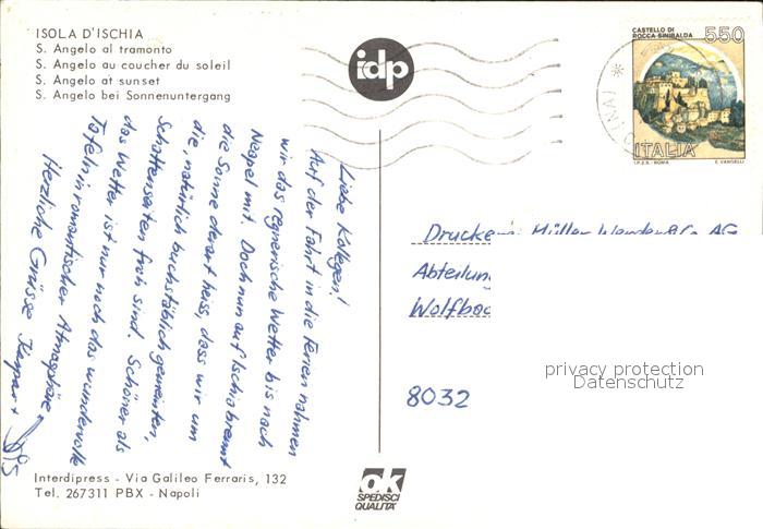 old postcard Isola d Ischia Angelo al tramonto Hafen Sonnenuntergang postalisch gelaufen Erhaltung siehe scans [FriedD77]