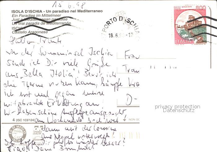 old postcard Isola d Ischia Castello Aragonese Aragonisches Schloss postalisch gelaufen Erhaltung siehe scans