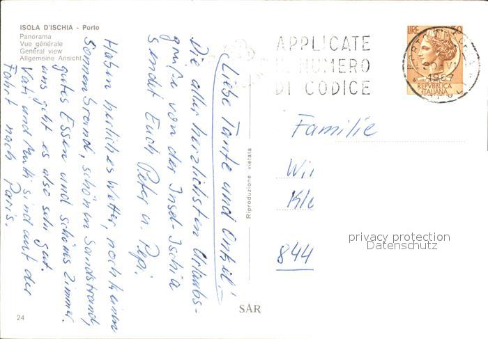 old postcard Isola d Ischia Panorama mit dem Hafen postalisch gelaufen Erhaltung siehe scans