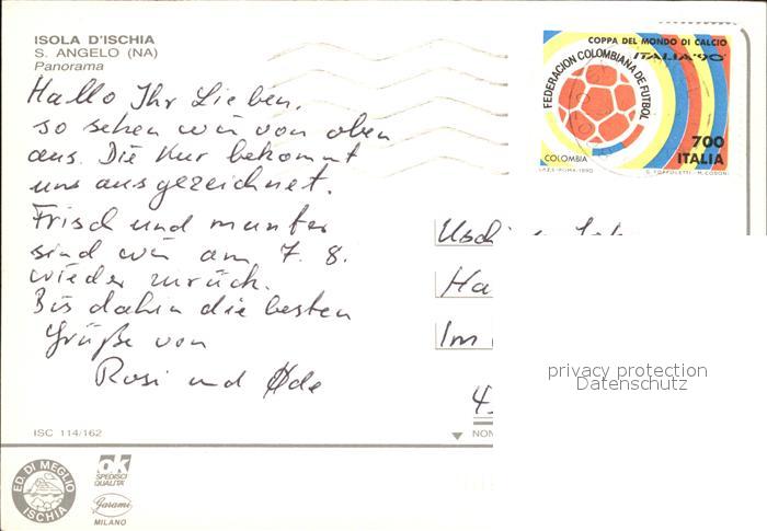 old postcard Isola d Ischia S Angelo Fliegeraufnahme postalisch gelaufen Erhaltung siehe scans