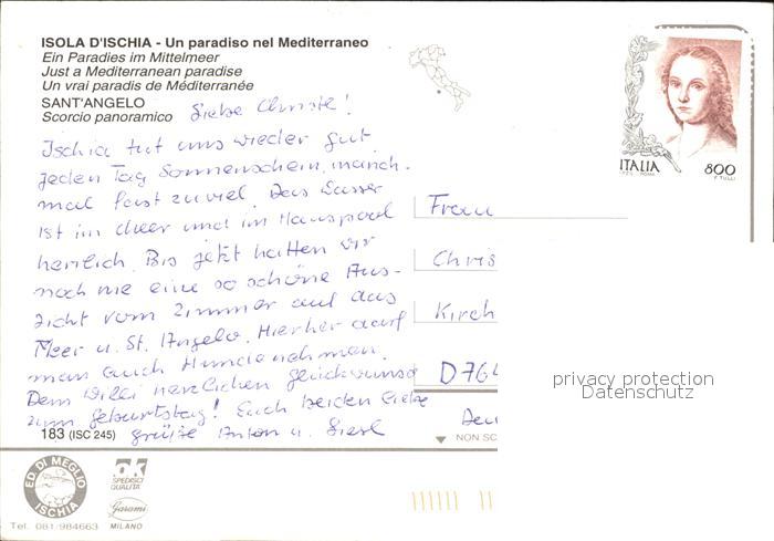 old postcard Isola d Ischia Sant Angelo postalisch gelaufen Erhaltung siehe scans