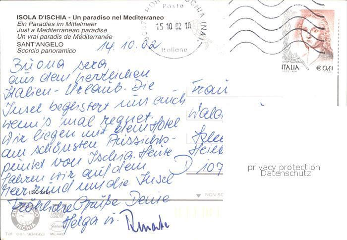 old postcard Isola d Ischia Sant Angelo postalisch gelaufen Erhaltung siehe scans