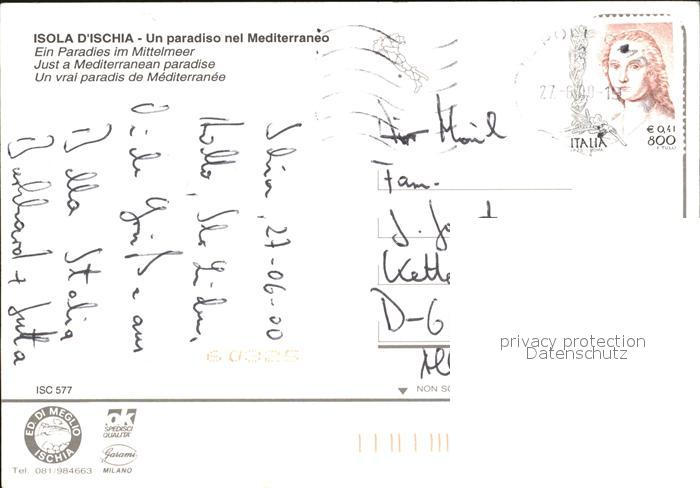 old postcard Isola d Ischia Schloss Fliegeraufnahme Hafenpartie postalisch gelaufen Erhaltung siehe scans