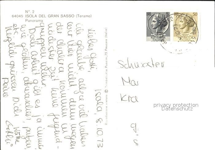 old postcard Isola del Gran Sasso Panorama postalisch gelaufen Erhaltung siehe scans
