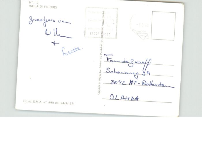 old postcard Isola di Filicudi Fliegeraufnahme postalisch gelaufen