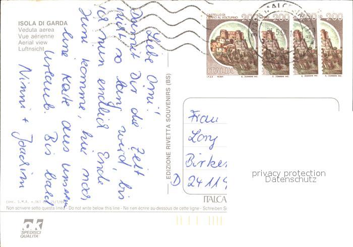 old postcard Isola di Garda Schloss Fliegeraufnahme postalisch gelaufen Erhaltung siehe scans
