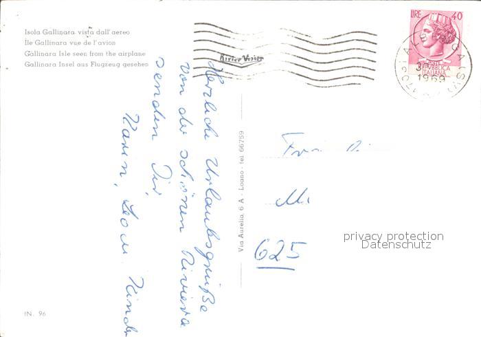 old postcard Isola Gallinara Fliegeraufnahme postalisch gelaufen Erhaltung siehe scans