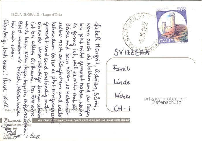old postcard Isola San Giulio Insel im Ortasee postalisch gelaufen Erhaltung siehe scans
