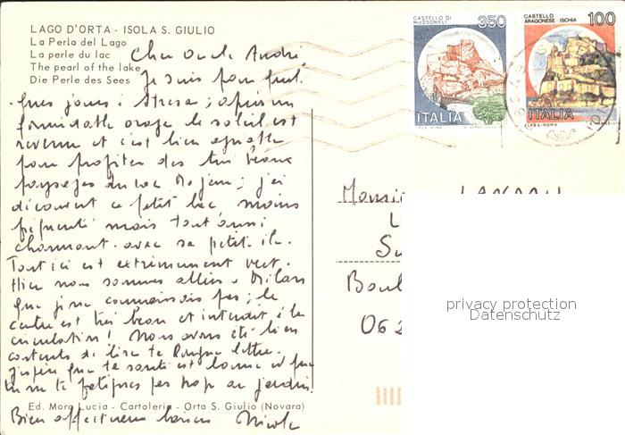 old postcard Isola San Giulio Lago d Orta Fliegeraufnahme postalisch gelaufen Erhaltung siehe scans