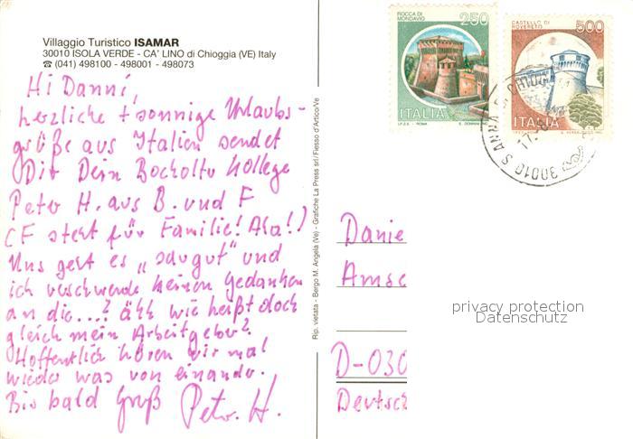 old postcard Isola Verde Villaggio Turistico Isamar Fliegeraufnahme postalisch gelaufen Erhaltung siehe scans [WerneD78]