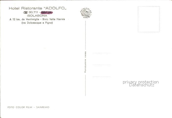Isolabona Hotel Ristorante Adolfo postalisch nicht gelaufen Erhaltung siehe scans