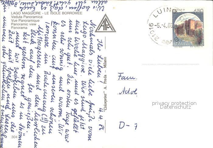 old postcard Isole Borromee Lago Maggiore Panorama postalisch gelaufen Erhaltung siehe scans