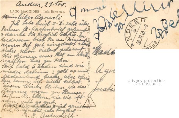 old postcard Isole Borromee Lago Maggiore Panorama postalisch gelaufen Erhaltung siehe scans [FriedD77]