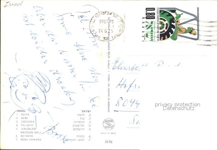 old postcard Israel Haifa Acre Jerusalem Netanya postalisch gelaufen Erhaltung siehe scans