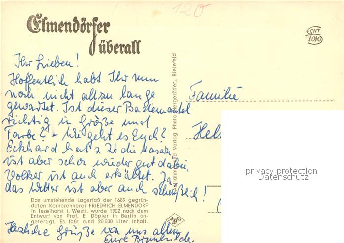72954703 Isselhorst Lagerfass Kornbrennerei Friedrich Elmendorf postalisch nicht gelaufen Erhaltung siehe scans [PaolaD17] KatCode: 11110005754008