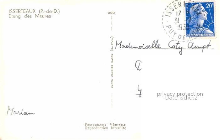 12891652 carte postale Isserteaux Etang des Meures postalisch gelaufen Erhaltung siehe scans [LiesaD40] KatCode: 11170063263177