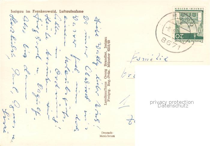 73667047 alte Postkarte Issigau Fliegeraufnahme postalisch gelaufen Erhaltung siehe scans [WerneD78] KatCode: 11110009475137