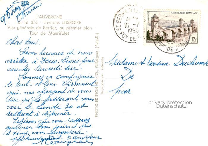 13826037 Issoire Vue generale de Perrier au premier plan Tour de Maurifolet postalisch gelaufen Erhaltung siehe scans [FriedD77] carte postale Frie Katcode 11170063363178
