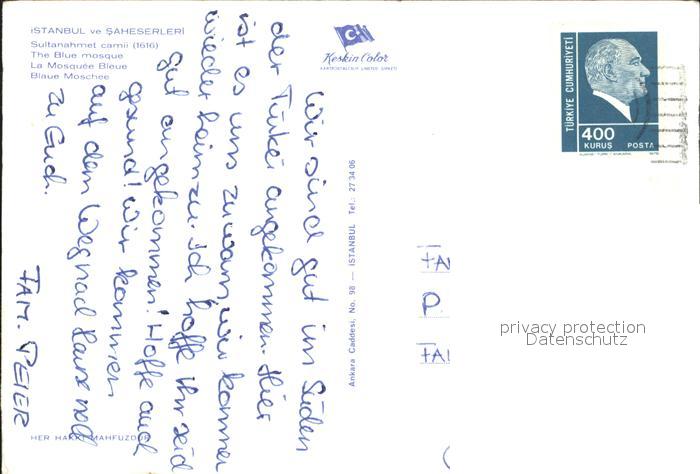 old postcard Istanbul Constantinopel Blaue Moschee postalisch gelaufen Erhaltung siehe scans