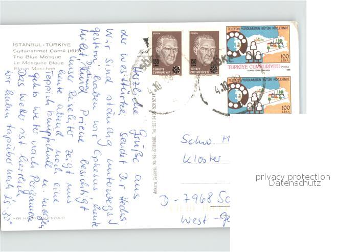 old postcard Istanbul Constantinopel Blaue Moschee postalisch gelaufen