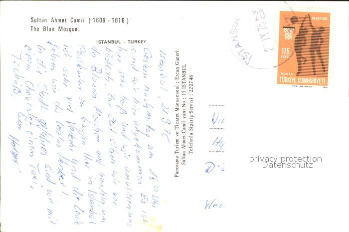 old postcard Istanbul Constantinopel Blaue Moschee postalisch gelaufen Erhaltung siehe scans