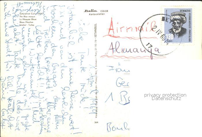 old postcard Istanbul Constantinopel Blaue Moschee postalisch gelaufen Erhaltung siehe scans
