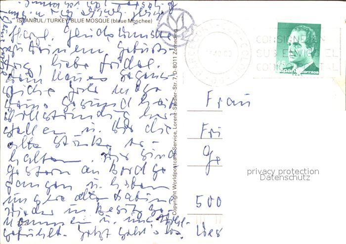 old postcard Istanbul Constantinopel Blaue Moschee postalisch gelaufen Erhaltung siehe scans