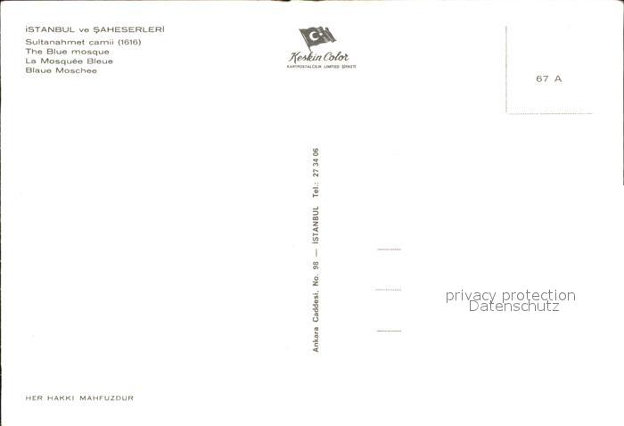Istanbul Constantinopel Blaue Moschee postalisch nicht gelaufen Erhaltung siehe scans