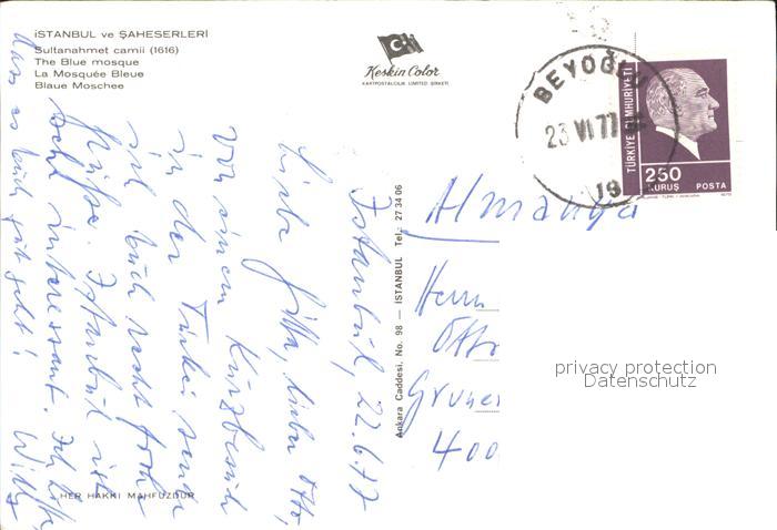 old postcard Istanbul Constantinopel Blaue Moschee postalisch gelaufen Erhaltung siehe scans