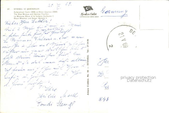 old postcard Istanbul Constantinopel Blaue Moschee Kaiser Wilhelm II postalisch gelaufen Erhaltung siehe scans