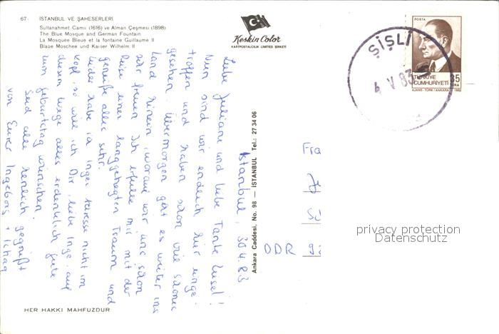 old postcard Istanbul Constantinopel Blaue Moschee Kaiser Wilhelm II postalisch gelaufen Erhaltung siehe scans