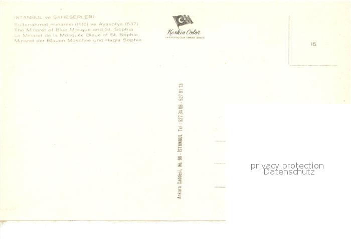 Istanbul Constantinopel Blaue Moschee Minarett postalisch nicht gelaufen Erhaltung siehe scans [FriedD77]